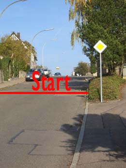 Rennstrecke beginnt an der Abzweigung Weinsteige.
